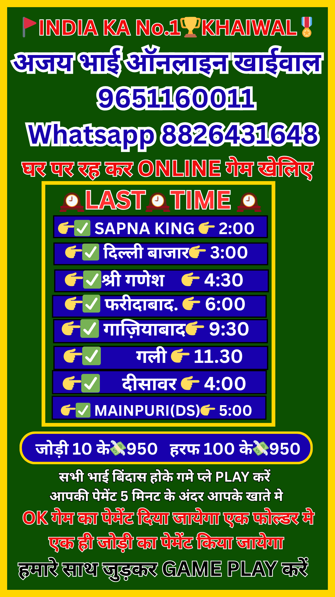 JO BHAI APNA LOSS COVER KARNA CHAHTE HO, GAME SINGAL JODI MAI HE MILEGA, GAME KISI KA BAAP NAHI KAAT SAKTA, APNI BOOKING KARANE K LIYE ABHI WHATSAPP YA CALL KARE!